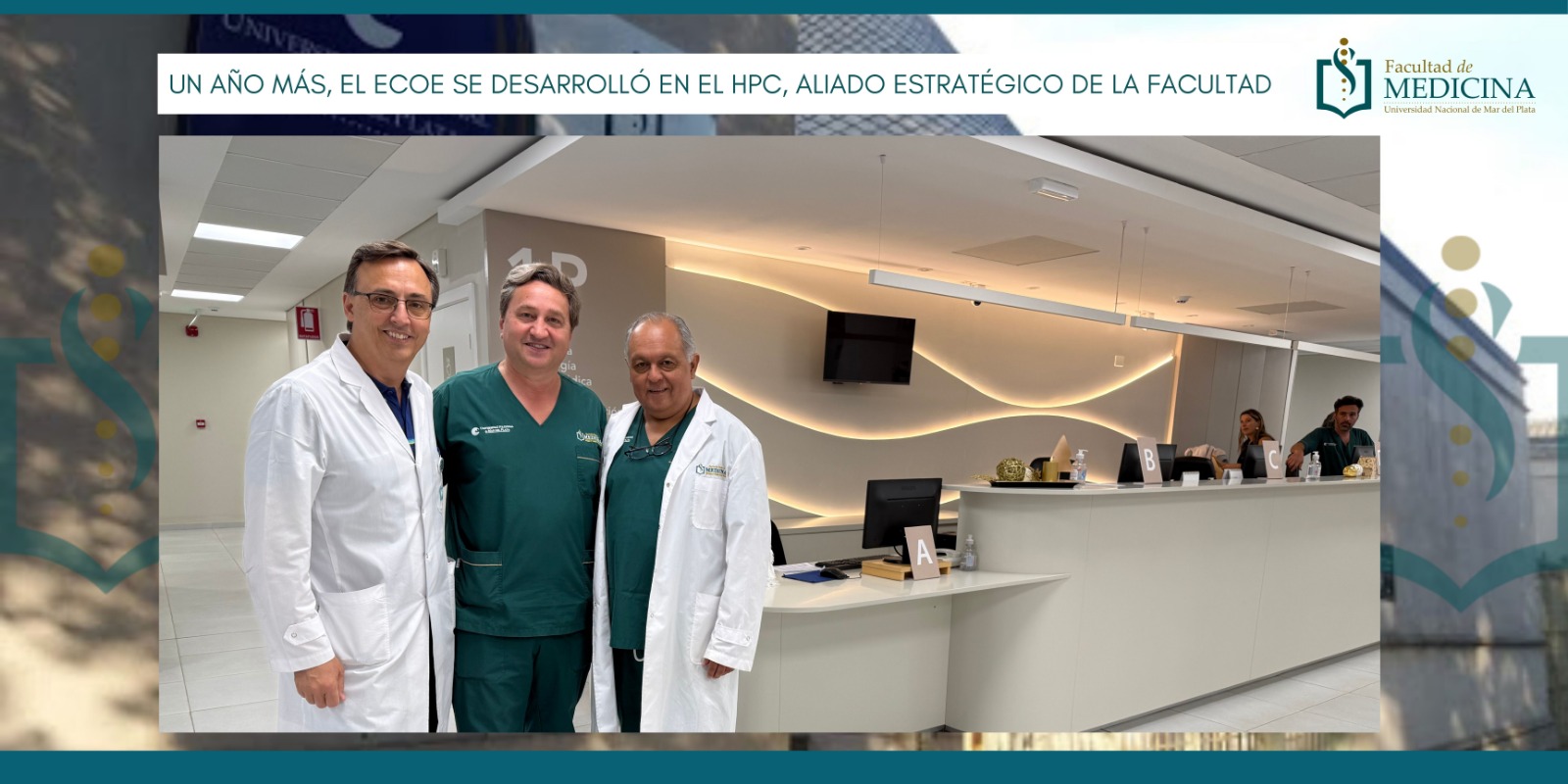 Un año más, el ECOE se desarrolló en el HPC, aliado estratégico de la FacultadLa Facultad de Medicina de la UNMDP agradece especialmente a las autoridades y al personal del Hospital Privado de la Comunidad por el acompañamiento y la colaboración en cada instancia del ECOE. En particular, al Dr. Fernando Santomil y al Dr. Pablo Malfante, referentes del HPC y actores clave en la realización de esta evaluación, cuyo compromiso reafirma el trabajo…in Novedades Prensa -