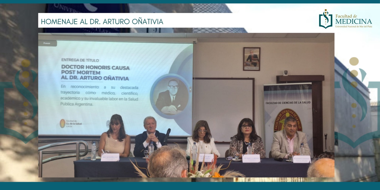 Homenaje al Dr. Arturo OñativiaUn reconocimiento a una figura decisiva de la salud pública argentina La Facultad de Medicina de la UNMDP acompañó el acto en el que la Universidad Nacional de Salta otorgó el título de Doctor Honoris Causa Post Mortem al Dr. Arturo Oñativia, en homenaje a su legado como médico, científico y referente central de las políticas sanitarias del país. En…in Novedades Prensa -