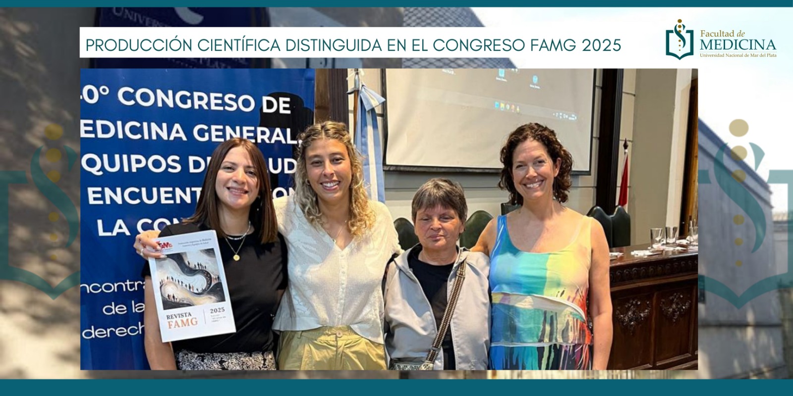 Participación en el Congreso FAMG 2025Docentes y estudiantes de la Facultad de Medicina UNMDP formaron parte de la 40° edición del encuentro nacional La Facultad de Medicina UNMDP estuvo presente en el 40° Congreso de Medicina General y Familiar, Equipos de Salud y Encuentros con la Comunidad (FAMG 2025), realizado del 5 al 8 de diciembre en la Facultad de Ciencias Médicas de la Universidad…in Novedades Prensa Read more... -