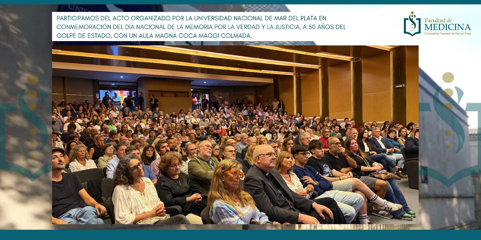 Participamos del acto organizado por la Universidad Nacional de Mar del Plata en conmemoración del Día Nacional de la Memoria por la Verdad y la Justicia, a 50 años del golpe de Estado, con un Aula Magna Coca Maggi colmada.
